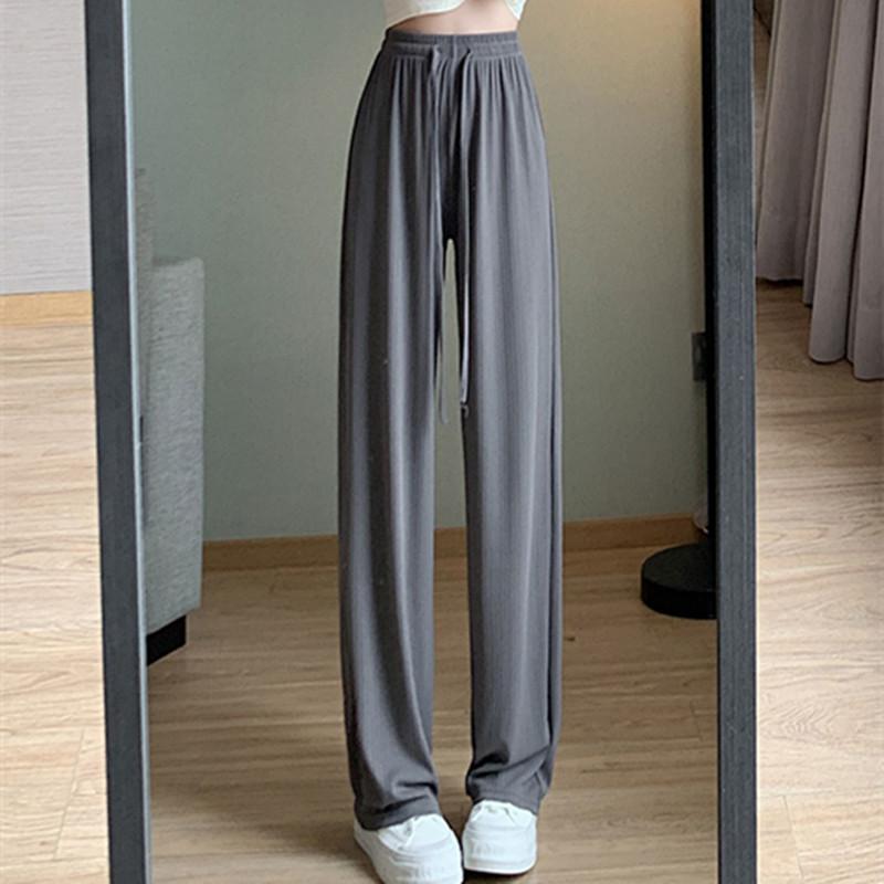 Широкие брюки из зеленого ледяного шелка Matcha для женщин на лето с высокой талией, узкие, прямые брюки, тонкие, солнцезащитные брюки