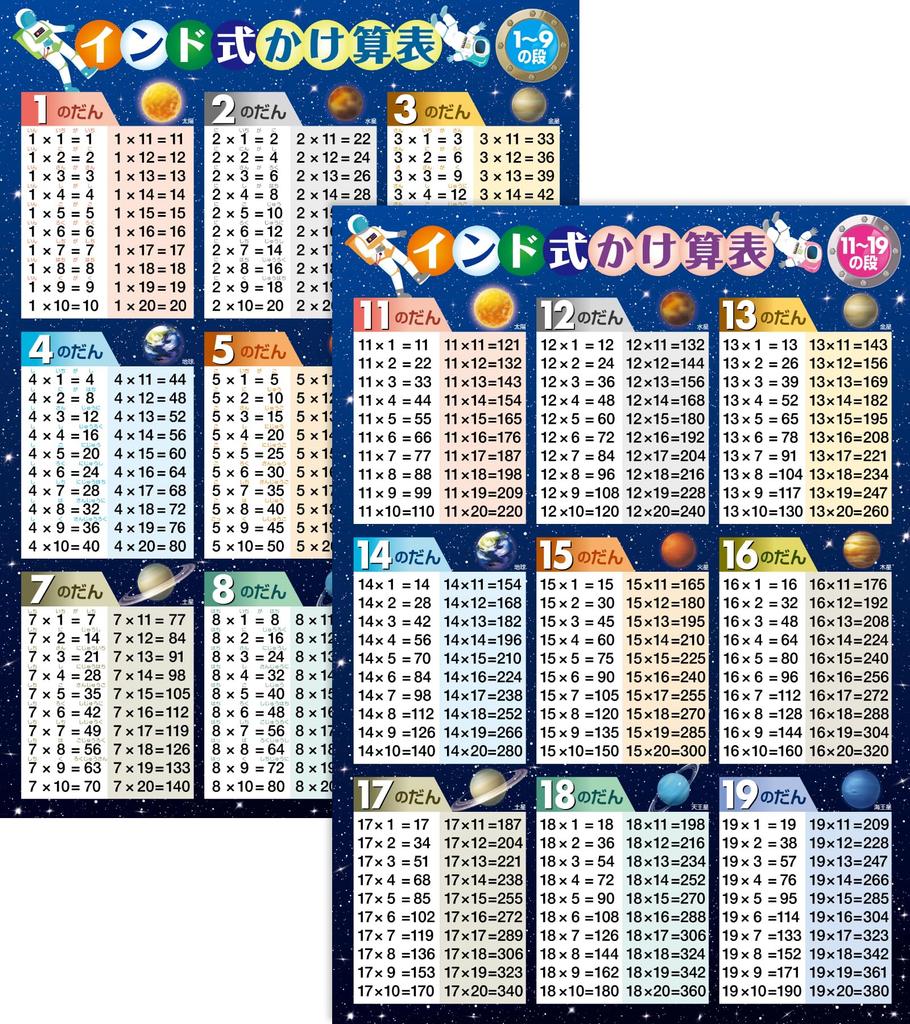 Таблица умножения в индийском стиле для школы в ванной, набор из 2 плакатов для школы в индийском стиле, сделано в Японии, арифметическое образовательное обучение, таблица умножения A2