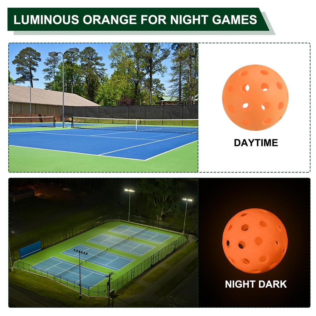 Особенности игры «Пикльбол»: 74мм (0.92") диаметр и 26г (0,92 унции) вес, подходит для всех уровней подготовки. Мяч для пиклбола на открытом воздухе, выполненный в ярких, привлекающих внимание цветах, легко заметить и быстро вывести на площадку, как днем, так и ночью.