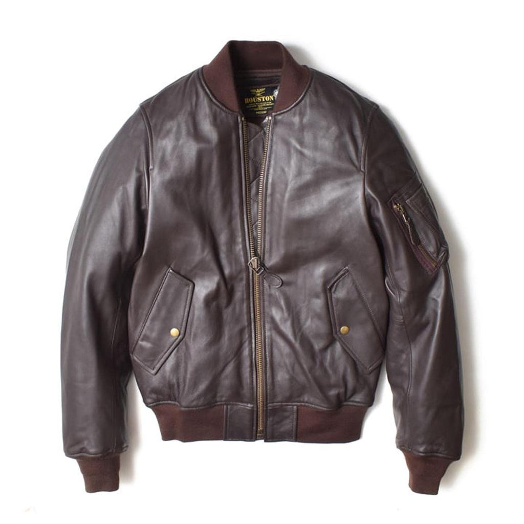 Sheep Leather Jacket [Houston] MA-1 Men's (Sheep Leather/Military/American Casual) (S Size/Brown)