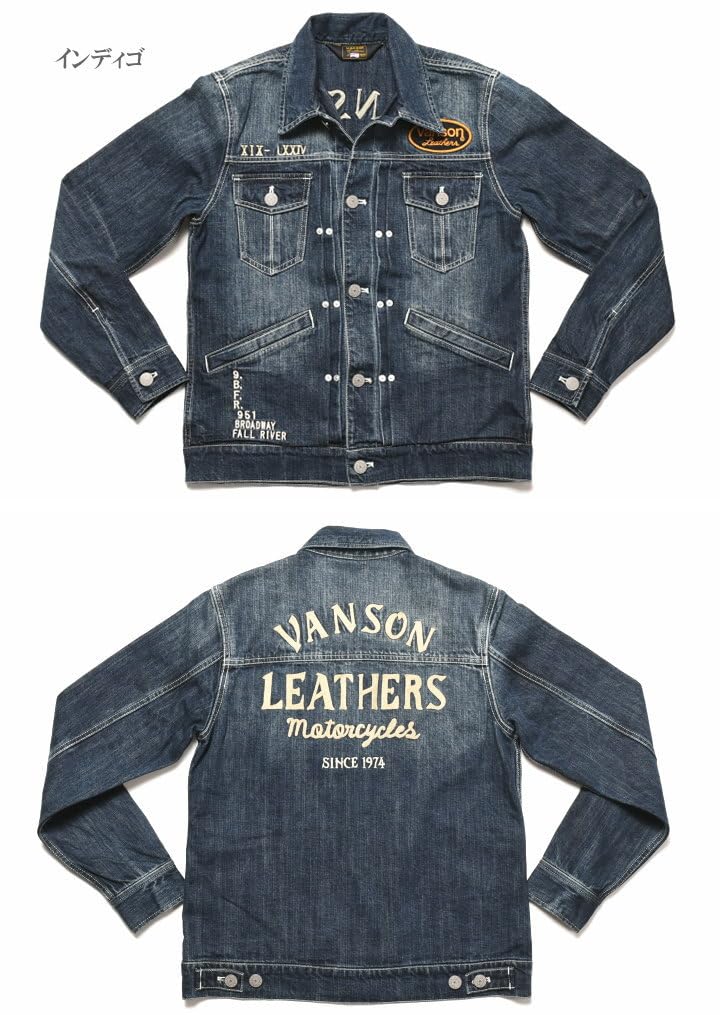 Джинсовая куртка с вышитым логотипом LEATHERS [Vanson] и NVSL-2305 (Л, Индиго)