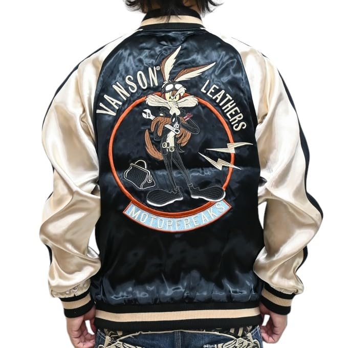 Сувенирная куртка Looney Tunes Sukajan Wile Coyote Tweety [Banson] LTV-2504 E. Мужской (JP, Алфавит, 2XL, Черный)