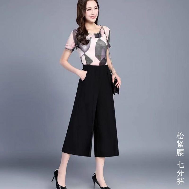 Женские шифоновые брюки широкого кроя, укороченные брюки, летние свободные брюки больших размеров, повседневные брюки прямого кроя с высокой талией