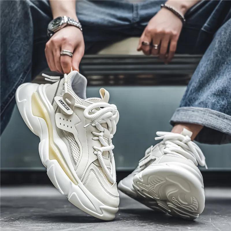 Мужские кроссовки для бега с толстой подошвой из сетки, дышащая спортивная повседневная обувь, трендовые кроссовки для ходьбы на открытом воздухе для взрослых, новые размеры 39-44