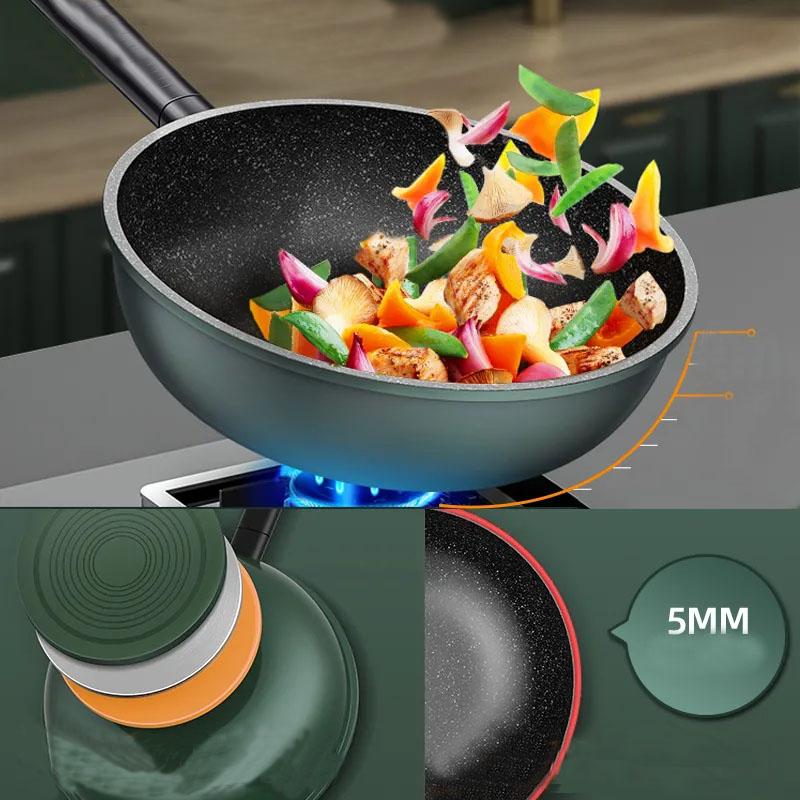 Каменная сковорода Wok Maifan, антипригарная посуда, бытовая индукционная плита вок, бездымная посуда