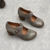 Johnature Винтажные босоножки ручной работы из натуральной кожи на высоком каблуке с выемками, дышащие женские туфли