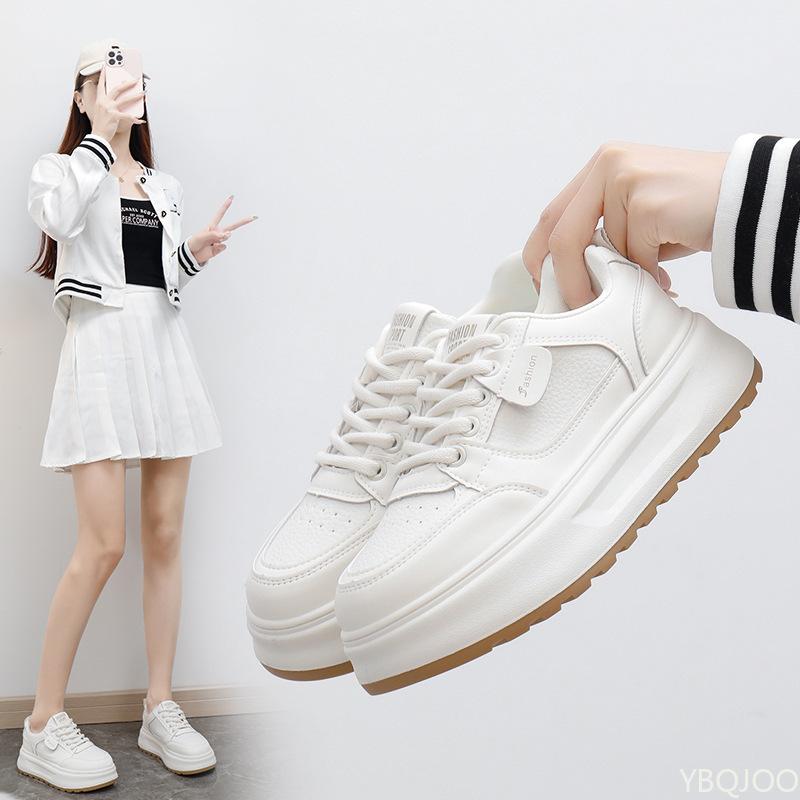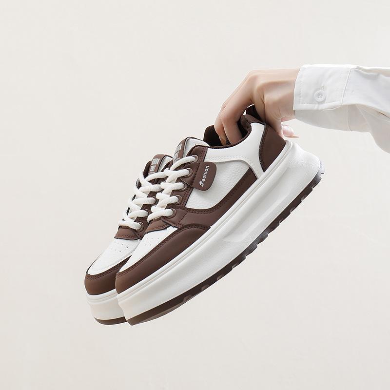 Модный тренд Спортивная обувь Весна и осень Женская обувь с круглым носком на шнуровке Дышащая и удобная Толстая подошва Повседневная обувь