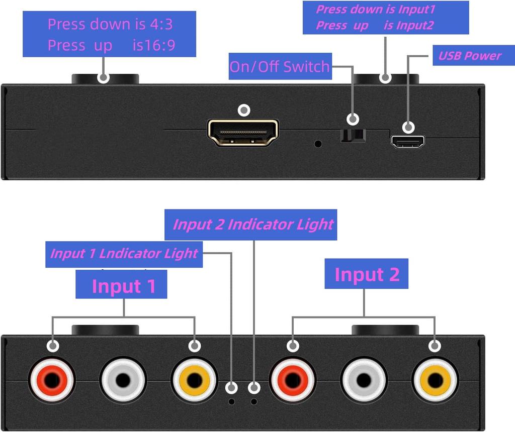 Если у вас есть какие-либо вопросы, пожалуйста, свяжитесь со службой поддержки продавца. Передовая обработка видео и технология масштабирования видео улучшают яркость изображения, коэффициент контрастности и цвет. Прочная алюминиевая конструкция обеспечивает долгий срок службы. уведомление: Это конвертер RCA в HDMI. Нельзя использовать как конвертер HDMI в RCA/AV.
