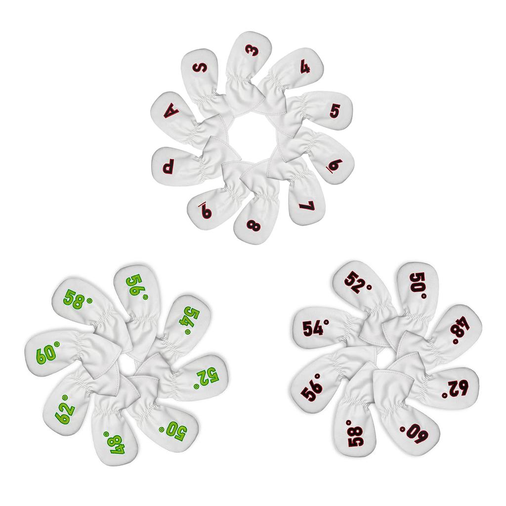 Набор клюшек для гольфа с чехлом на головку, для мужчин, левая и правая, 10 предметов (3-9, П, А, С) Красный, вышитый номер с обеих сторон, белый, искусственная кожа, ПУ