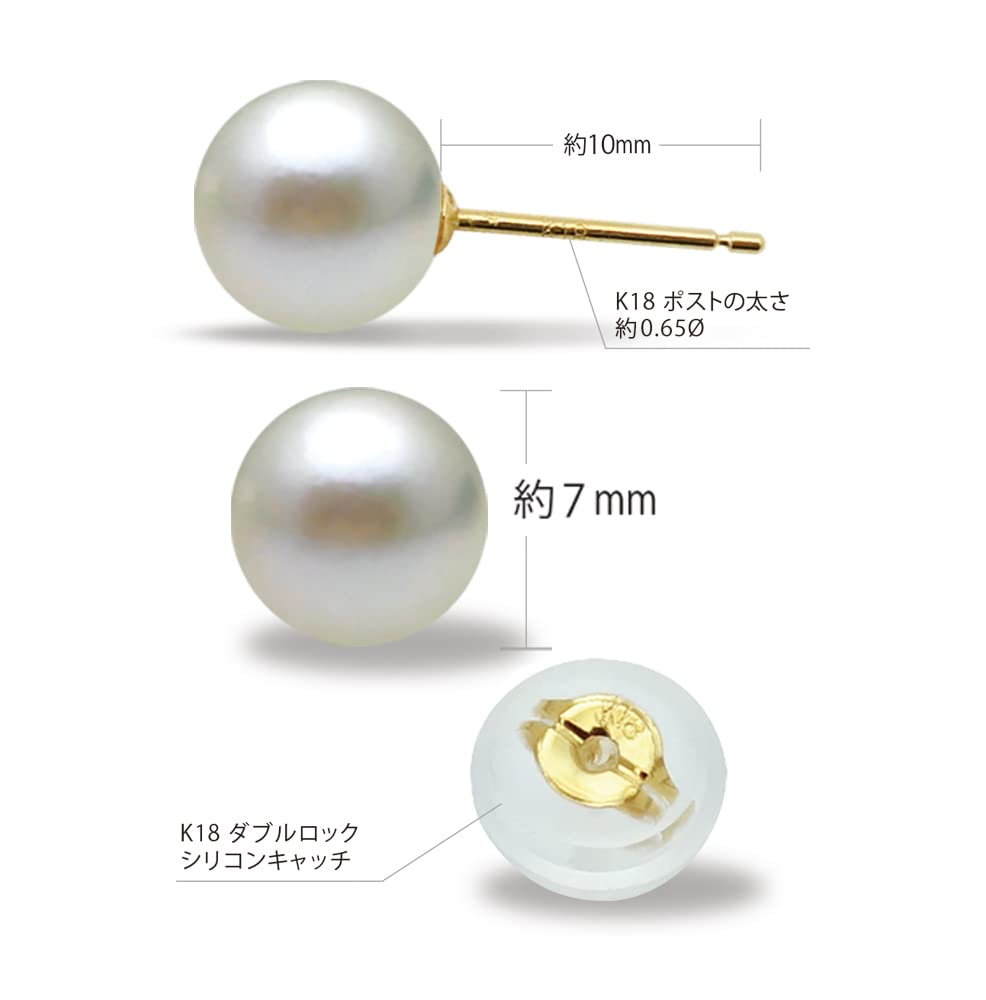 K18 Akoya pearl earrings 18K pearl genuine pearls 7mm 7.0mm / earrings, (18K)