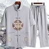 Костюм ханьфу с короткими рукавами в китайском стиле, мужской костюм Тан, летний костюм тайцзи в китайском стиле, костюм дзен, мужская одежда