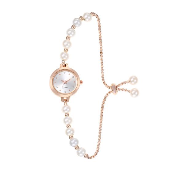 Элегантные женские часы из сплава: Эти часы, изготовленные с точностью, могут похвастаться стильным круглым циферблатом, который излучает элегантность и изысканность.. Красочные стразы и искусственные жемчужины на тонком браслете добавят нотку красоты и очарования любому наряду.