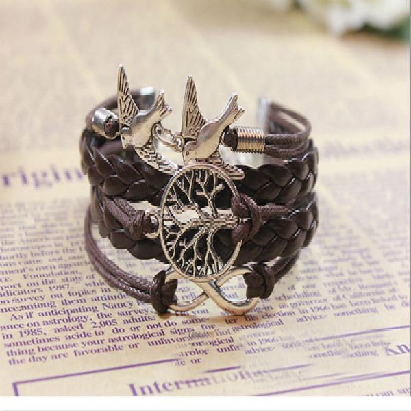 Изысканный винтажный многослойный браслет ручной работы «Рождественская елка с восемью птицами»