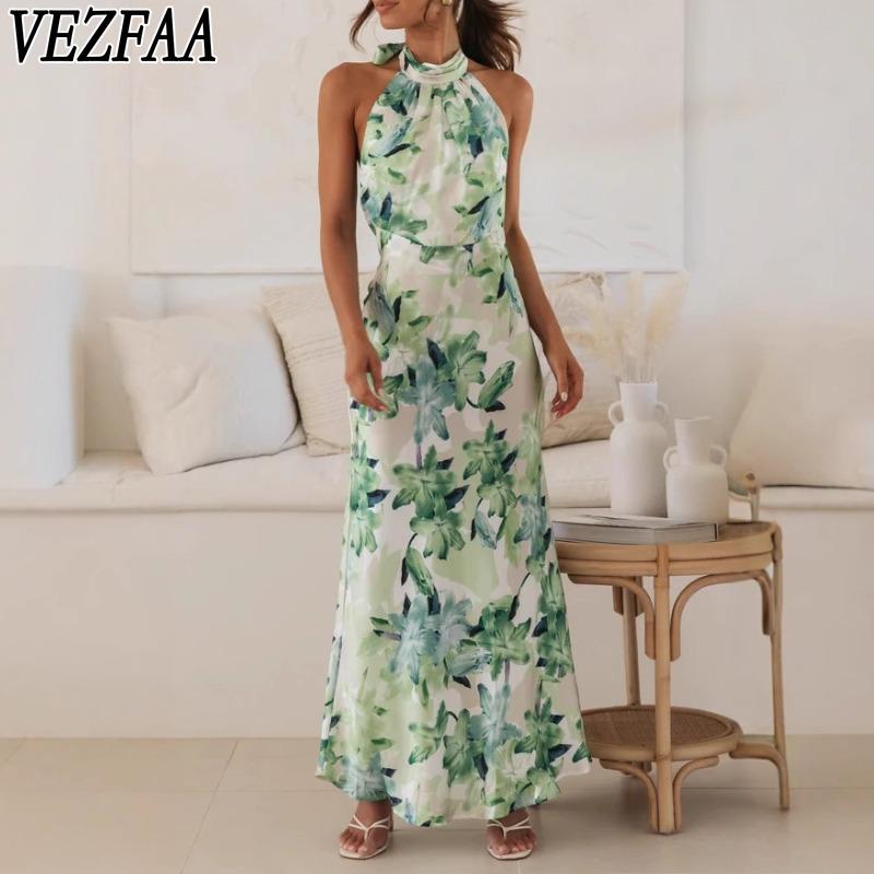 VEZFAA Женская мода лето весна цветочный узор принт без рукавов свисающий вырез высокая талия повседневные платья