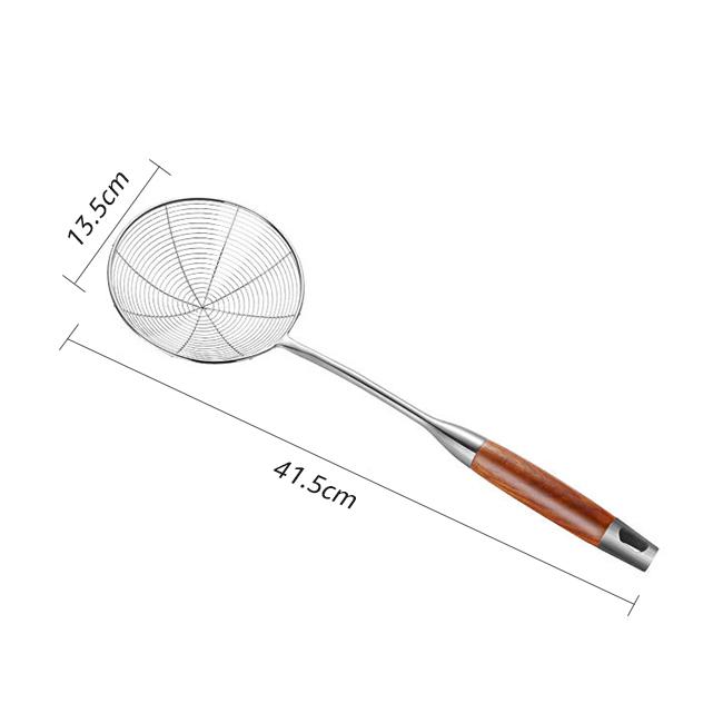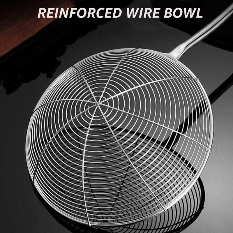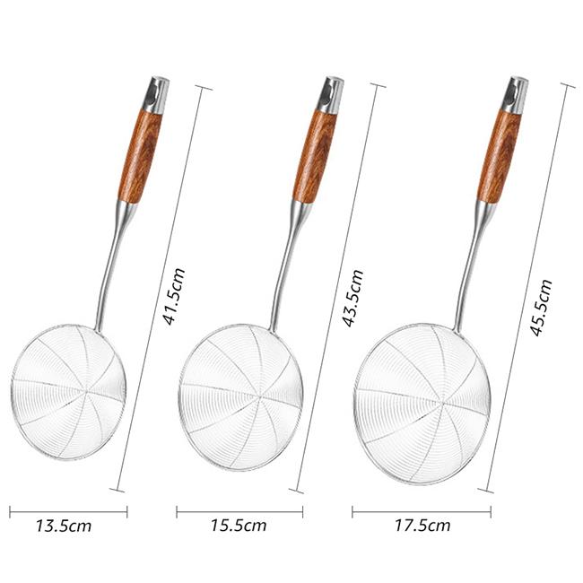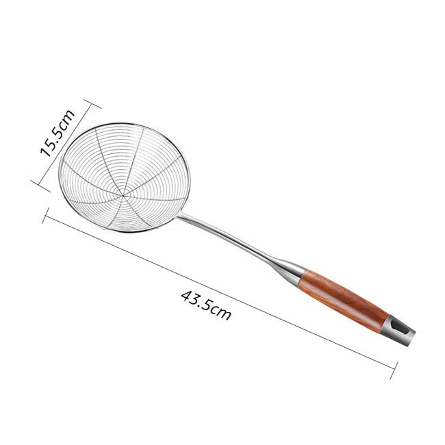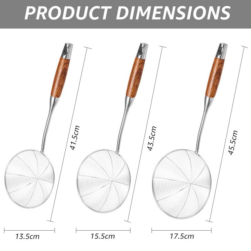 УДОБНЫЙ ЗАХВАТ - Эргономичный дизайн с деревянной ручкой, устойчивой к нагреванию и скольжению, что обеспечивает более крепкий и надежный захват при использовании.. Чаша сита идеально сварена, поэтому она прочная и небьющаяся.