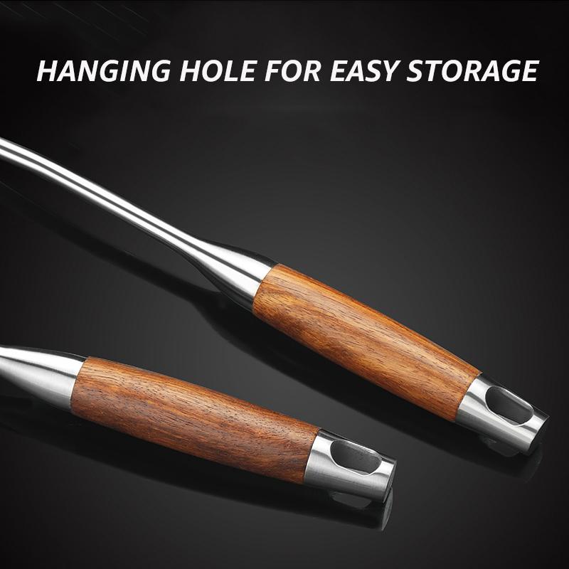ЛЕГКО ОЧИЩАТЬ И ХРАНИТЬ - Эта утварь представляет собой перфорированный инструмент для жарки с антипригарным покрытием, поэтому не беспокойтесь о прилипании и остатках пищи.. Отверстие для подвешивания на конце, что делает его удобным для хранения. В целом, его также можно мыть в посудомоечной машине.