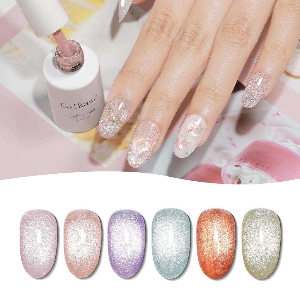 Magnetic Gel Coikaze Clear Oval Gel Nail Magnet Nail Gel 6 Color Set Eye Gel Galaxy Nail Color Gel Eye Nail Gel with Magnet Compatible Magnet Cat's