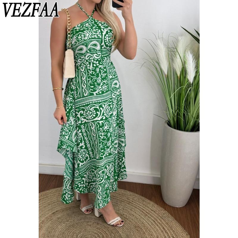 VEZFAA Женские Модные Летние Весенние Платья Без Рукавов с Вырезом Холтер и Завышенной Талией — купить товар онлайн с бесплатной доставкой по всему миру!