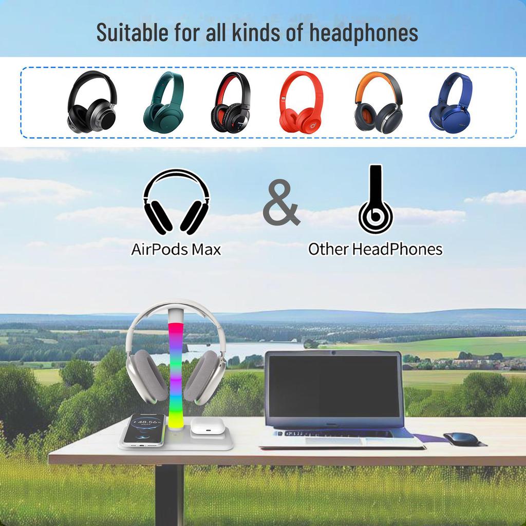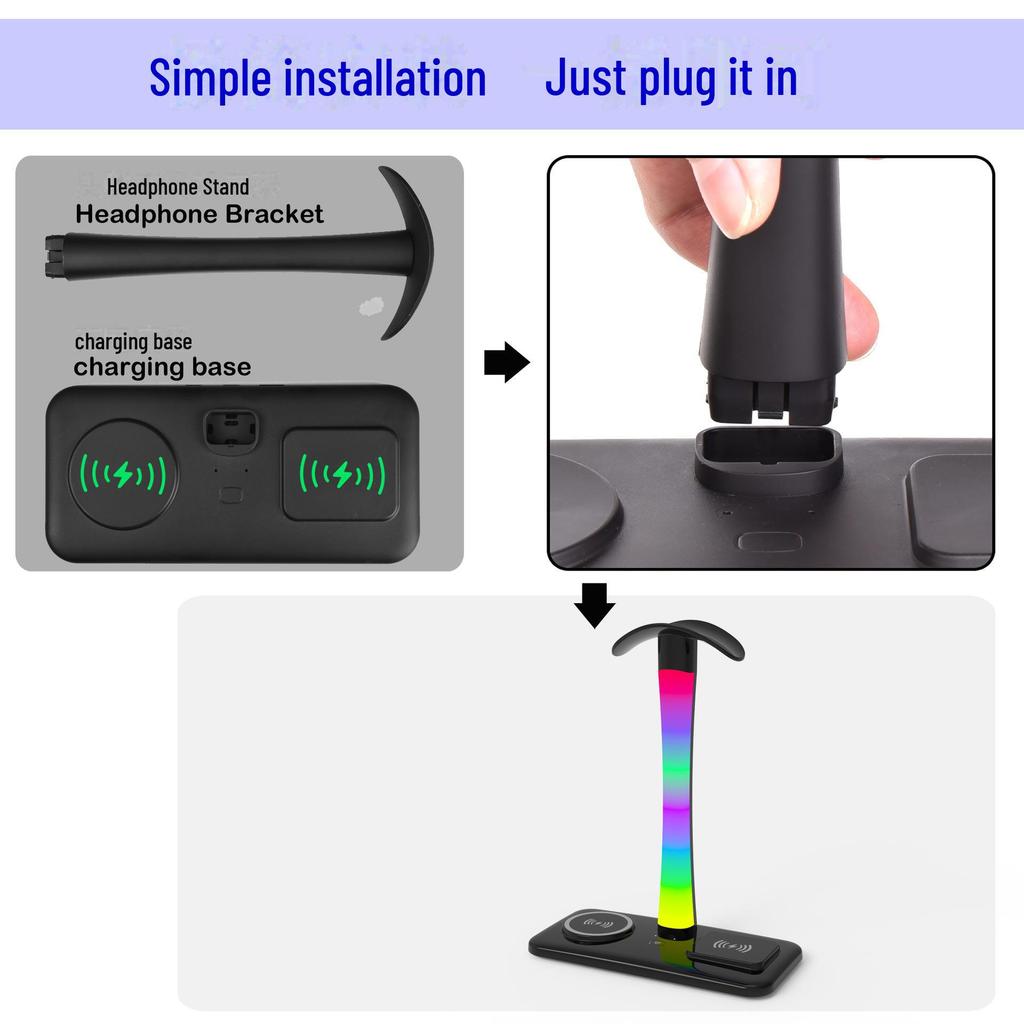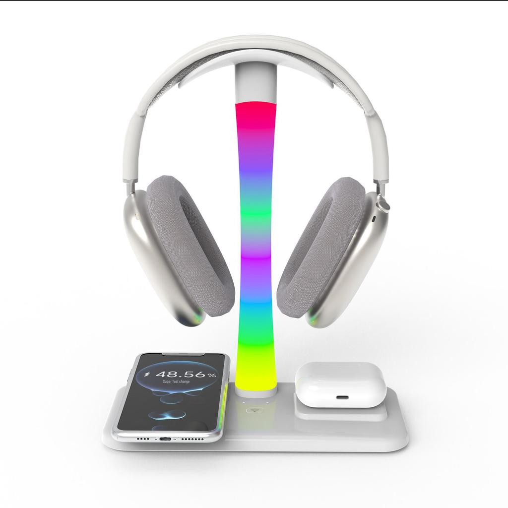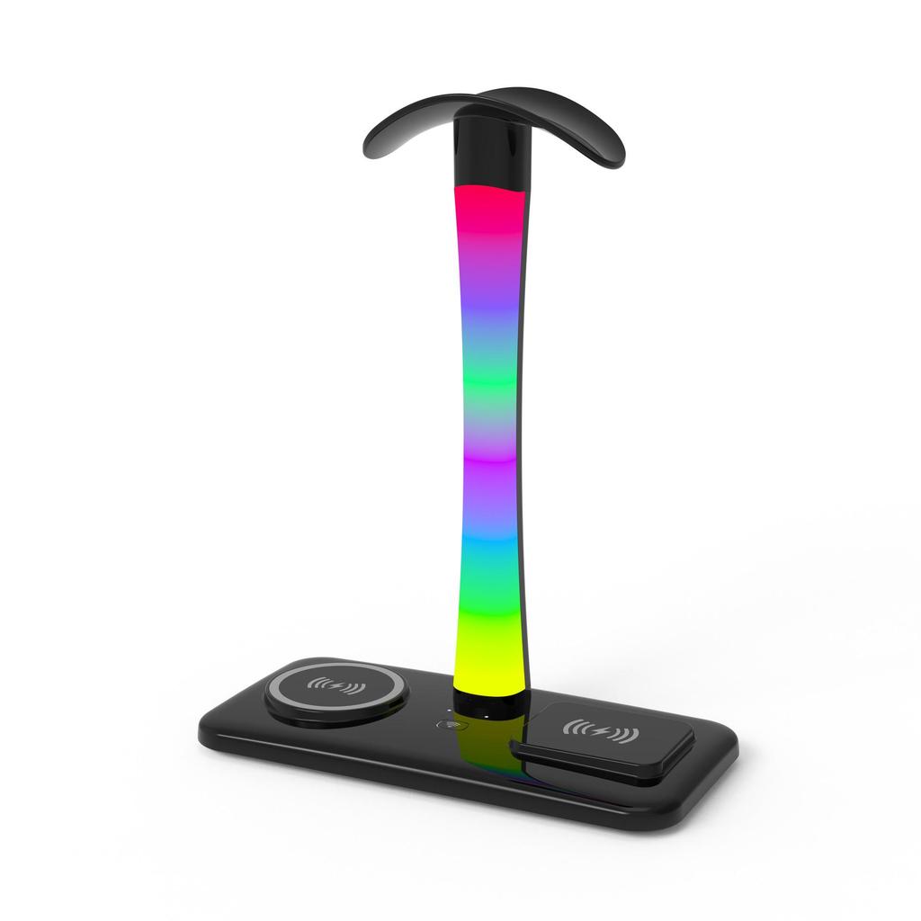 2025 Универсальная игровая подставка для наушников, беспроводное зарядное устройство для телефона, с цветной светодиодной подсветкой