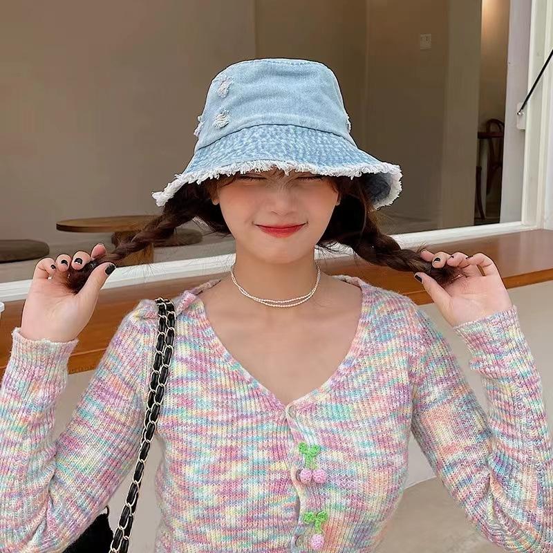 Ретро джинсовая шляпа-ведро с потертым краем, женская летняя шляпа-тазик с потертым грубым краем, мужская модная шляпа от солнца для пары