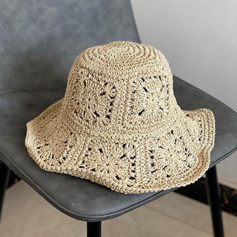 Солнцезащитная шляпа, шляпа-ведро, пляжная шляпа, вязаная крючком соломенная шляпа, свежая дорожная шляпа ручной работы, летняя шляпа-ведро Big Edge
