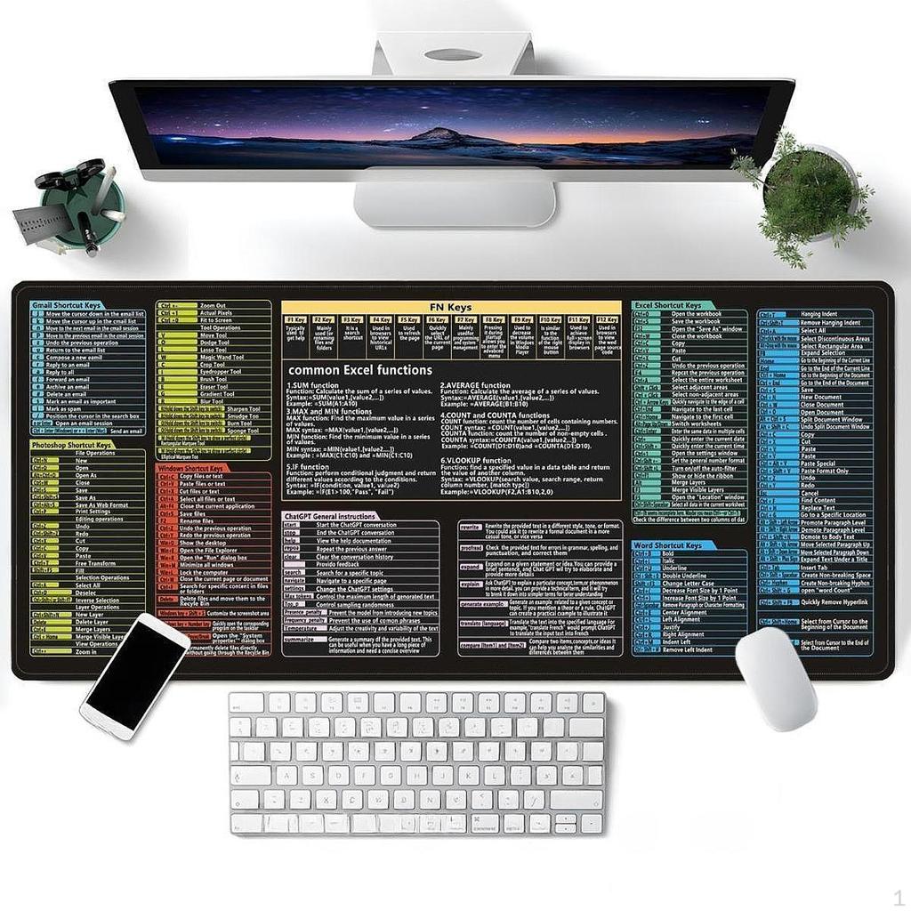 - 【Уникальный дизайн】: Этот игровой коврик для мыши с напечатанными сочетаниями клавиш для обычных офисных программ может значительно повысить эффективность нашей повседневной работы и помочь новичкам освоить и гибко использовать эти сочетания клавиш.