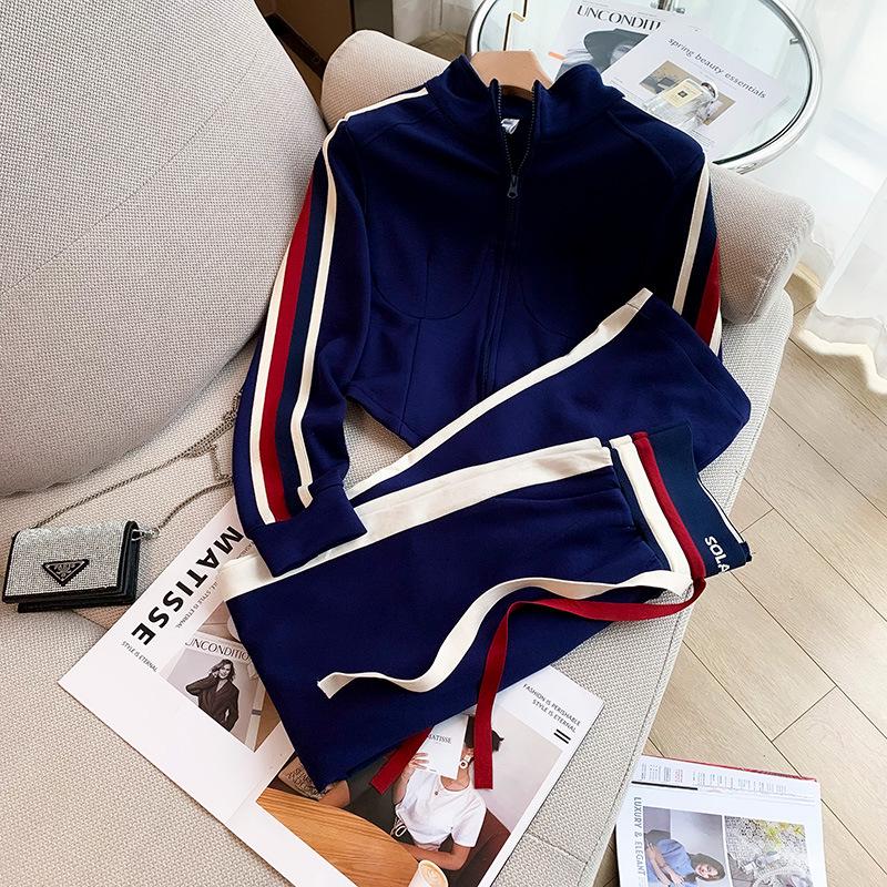 Женский бархатный спортивный костюм осень/зима: Европейский дизайн: короткий свитер, куртка и повседневный комплект из двух предметов — купить товар онлайн с бесплатной доставкой по всему миру!
