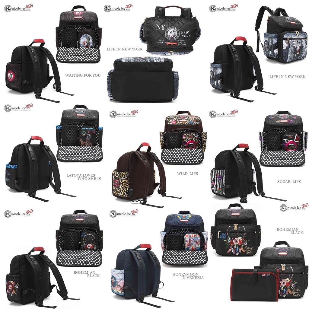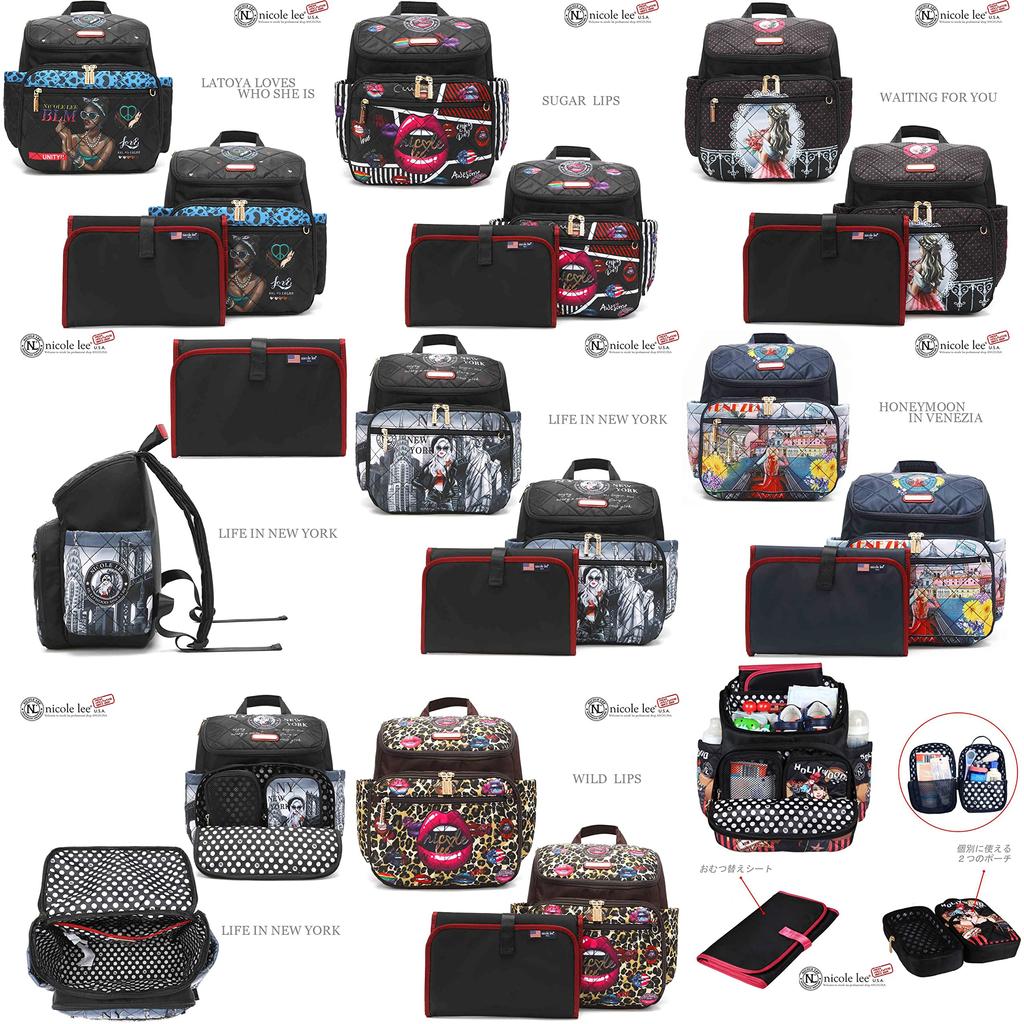 NICOLE LEE DIA12274 Backpack Quilted Pouch Diaper Changing Sheet Set Shoulder Nylon Bag Vegan Back Large Nicole Lee Lightweight Sustainable SDGs