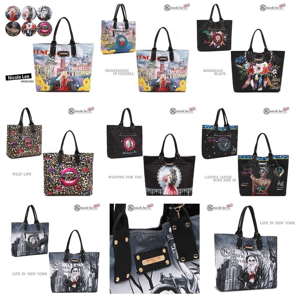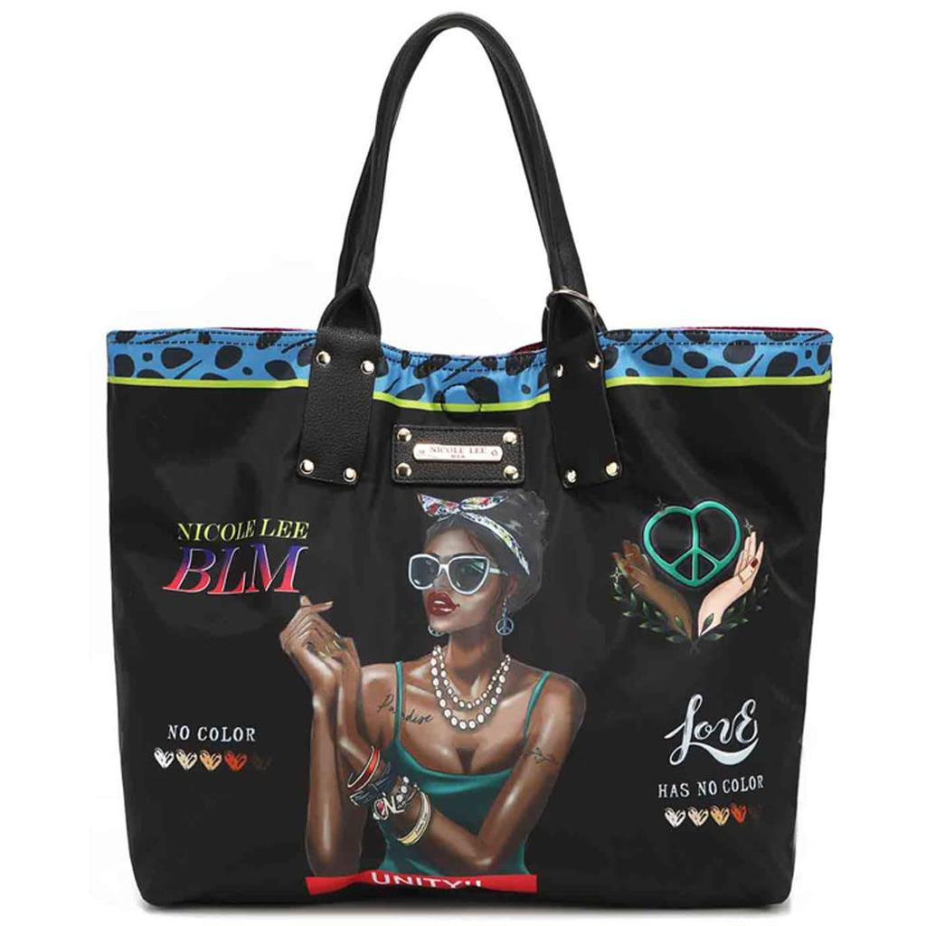 NICOLE LEE P15435 LATOYA LOVES WHO SHE IS Reversible Tote Bag Metallic Illustration Art Bag Vegan Leather Vegan White Nylon Logo Large Eco Bag