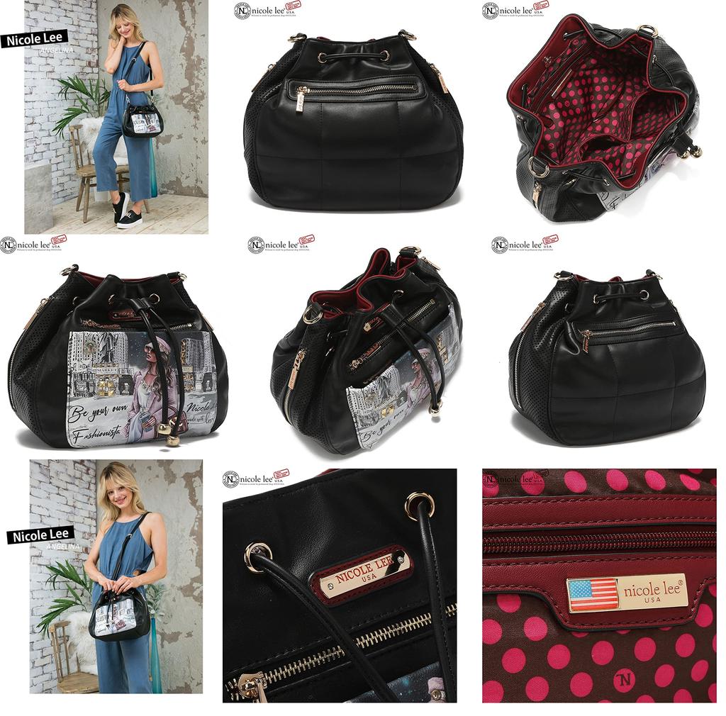 NICOLE LEE SS16668 SARA IS SOFT BUT STRONG Drawstring Bag Mini Bag Shoulder Small Vegan Leather Vegan Popular SDGs Sustainable Travel Valuables Black