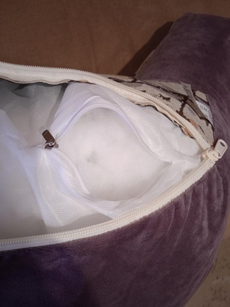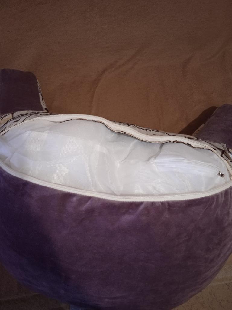 Подушка доставлена целой,хотя дырки в целофановой упаковке были. Заказывала серую подушку,как на фото,а пришла зелёная. Но больше всего убили белые пуговицы и белая резинка . Набита средне и не равномерно. Размер меньше ожидаемого.