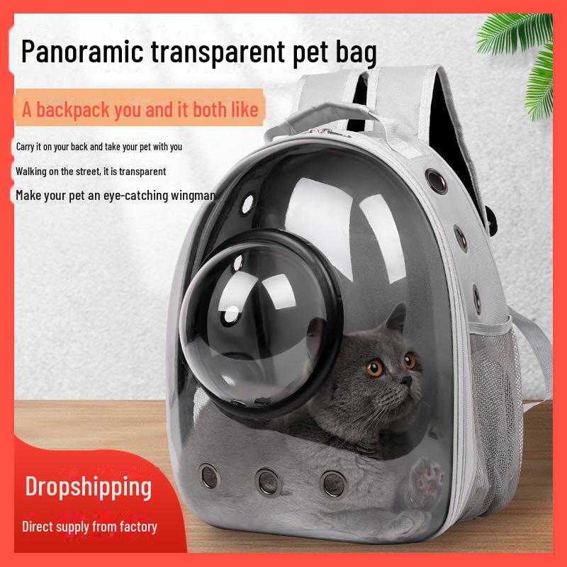Дышащий прозрачный рюкзак для кошек: Просторная панорамная капсульная конструкция для комфортных прогулок — возможность переноски двумя руками