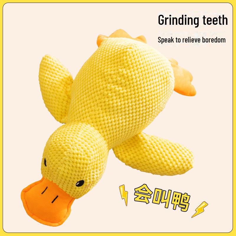 Мягкая желтая игрушка для жевания «Уточка» для собак и кошек — интерактивный звук и развлечение, вызывающее скрежетание зубами