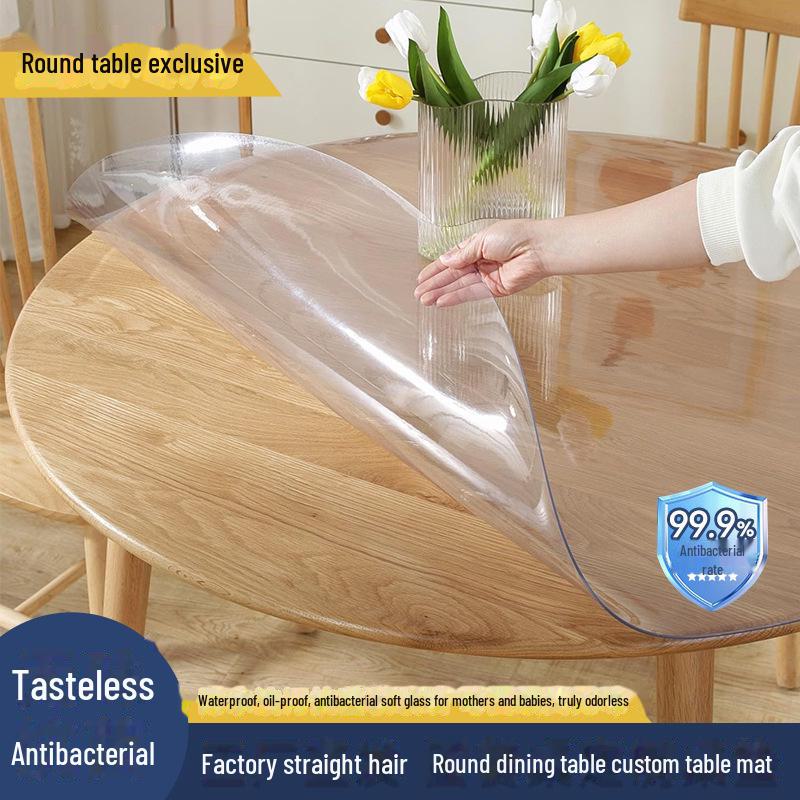 Прозрачная круглая ПВХ скатерть-мат - Водонепроницаемая, маслостойкая, жаростойкая, моющаяся защитная подкладка для журнальных столиков.