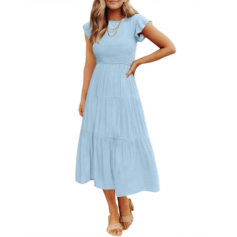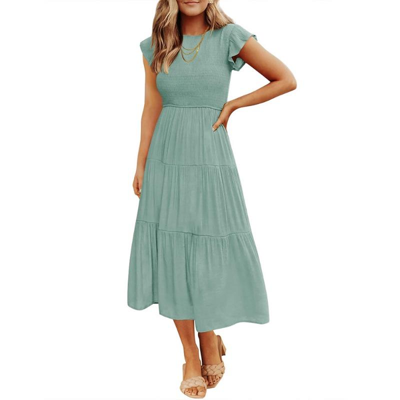 Это платье — неотъемлемая часть летнего гардероба.. Независимо от того, занимаетесь ли вы делами или пьете кофе в кафе, его классический дизайн и воздушный комфорт сделают его вашим любимым предметом..