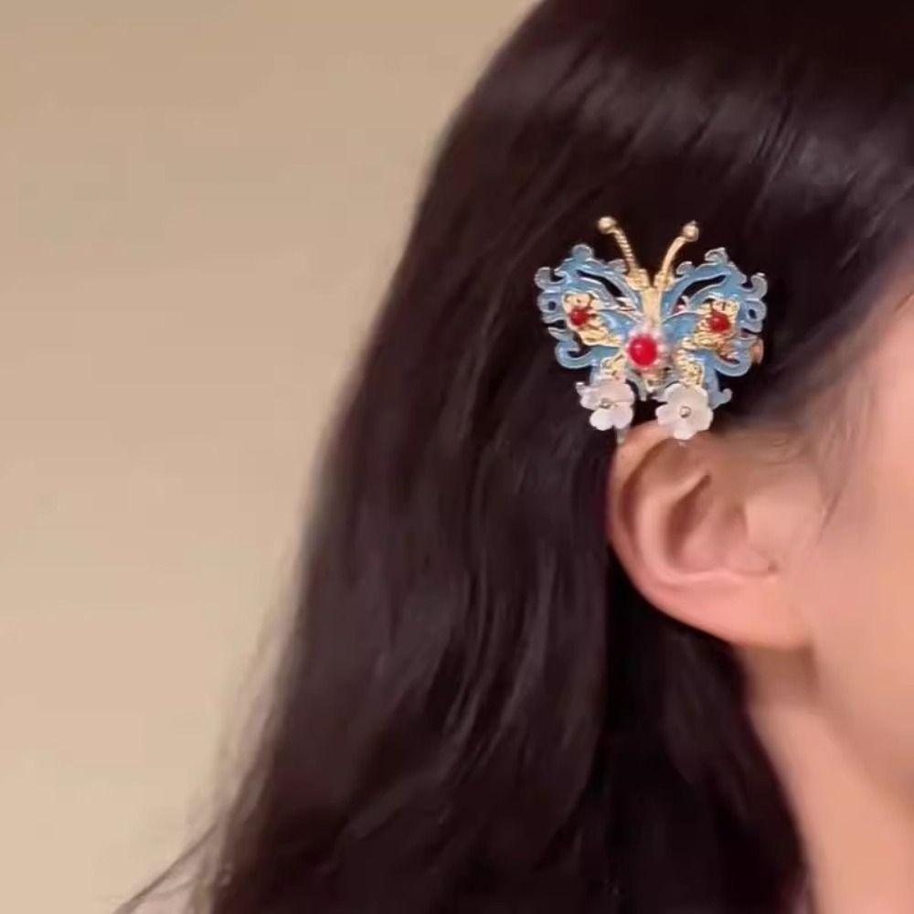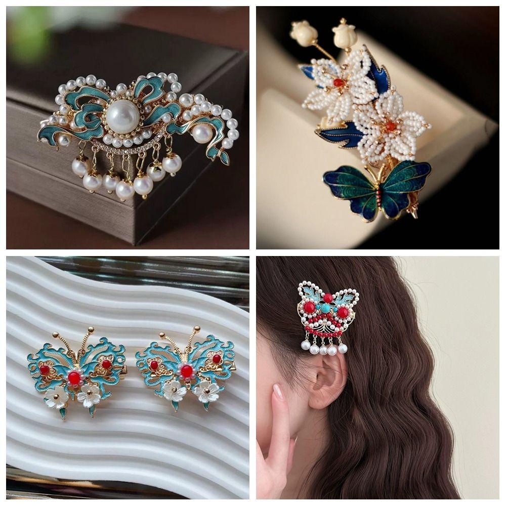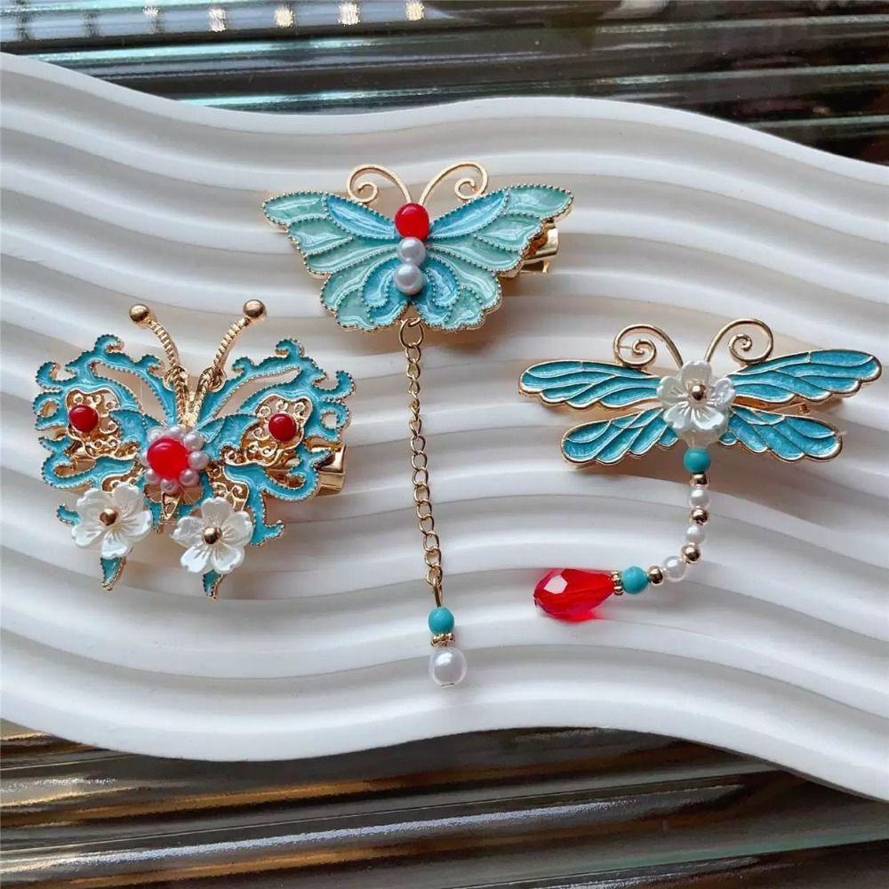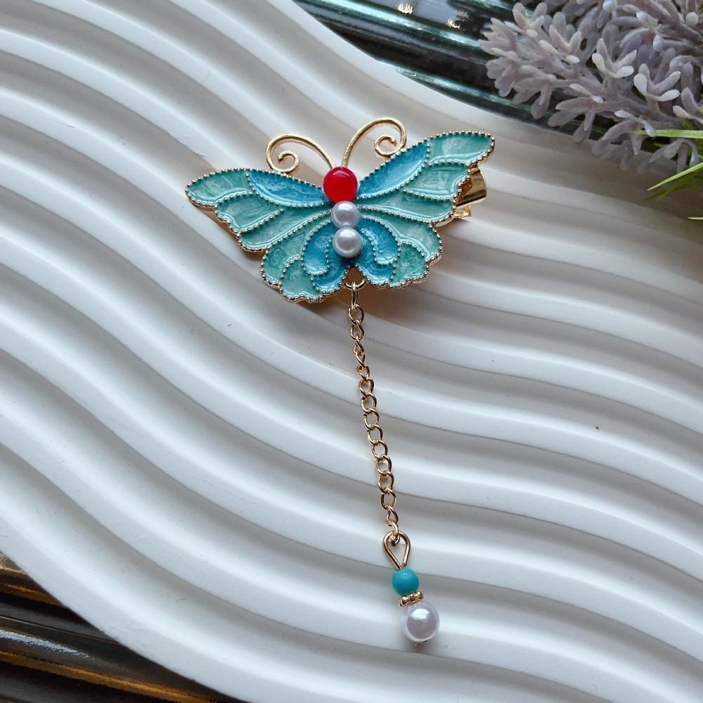 Заколка для волос с жемчужной кисточкой «Танец льва» в виде бабочки, простая детская заколка для волос в стиле ханьфу