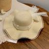 Весна-лето кружевная соломенная шляпа с жемчугом, большие поля, женская соломенная шляпа с бантом и лентой для девочек