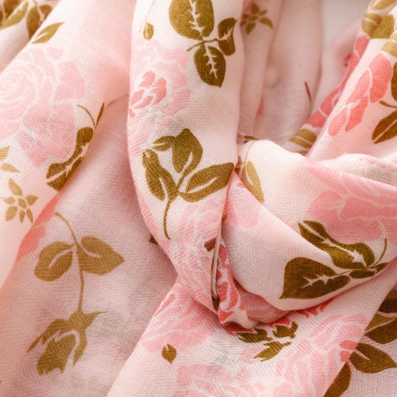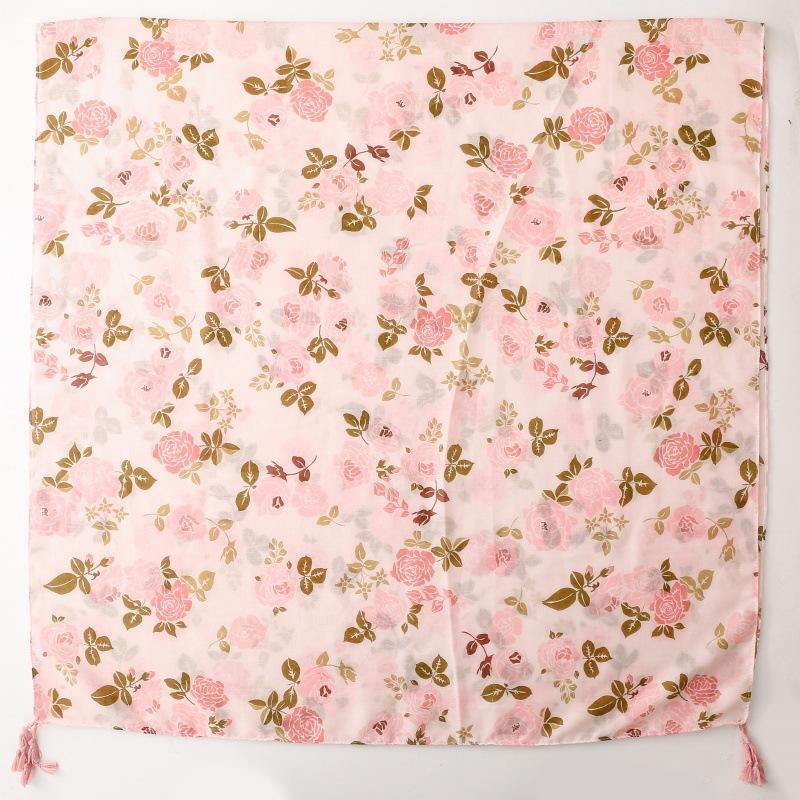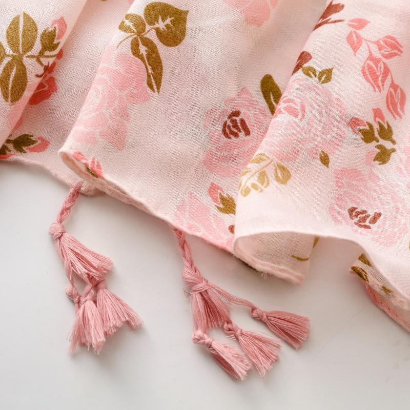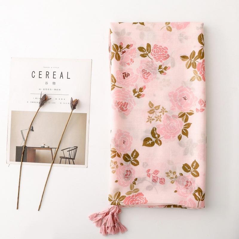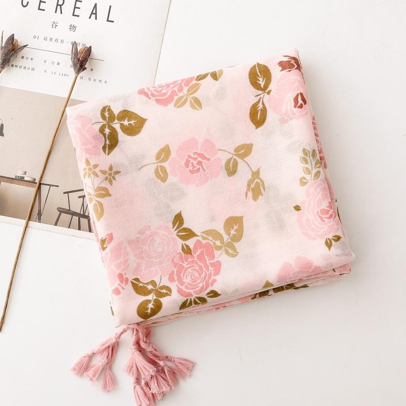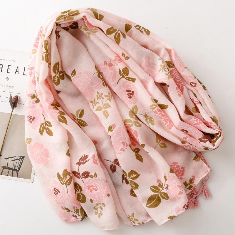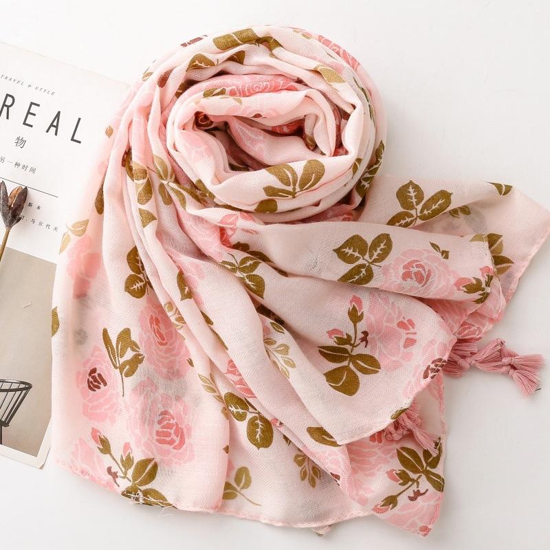 Женский ретро-шарф, толстый розовый шелковый шарф с цветочным узором, теплая шаль с бахромой, аксессуары