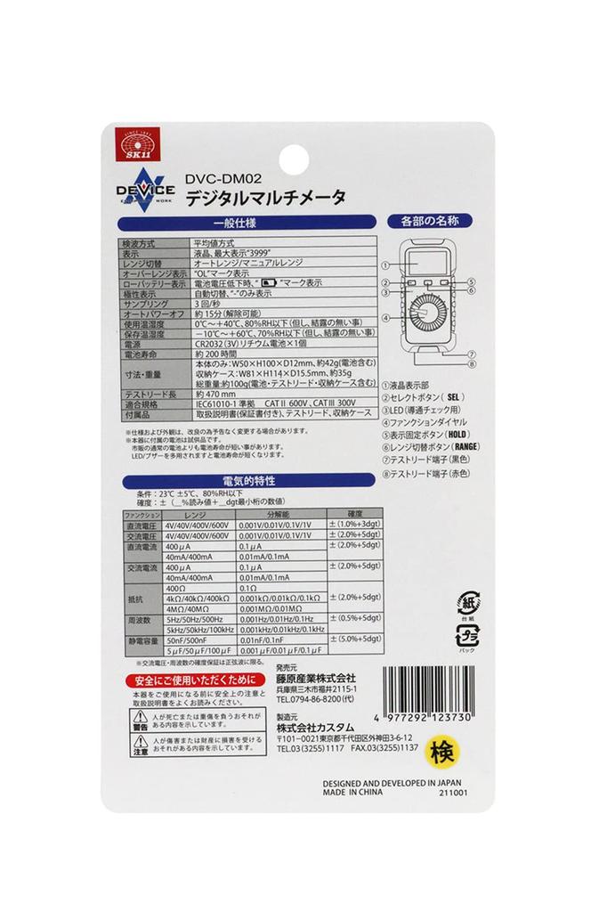 Метод обнаружения: Метод среднего значения, Автоматическое отключение питания: Приблизительно 15 минут (Отменяемый), Длина испытательного провода: Приблизительно 470 мм