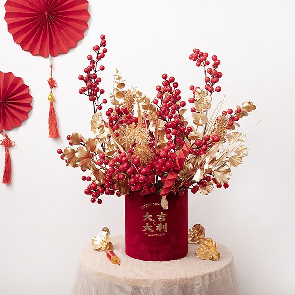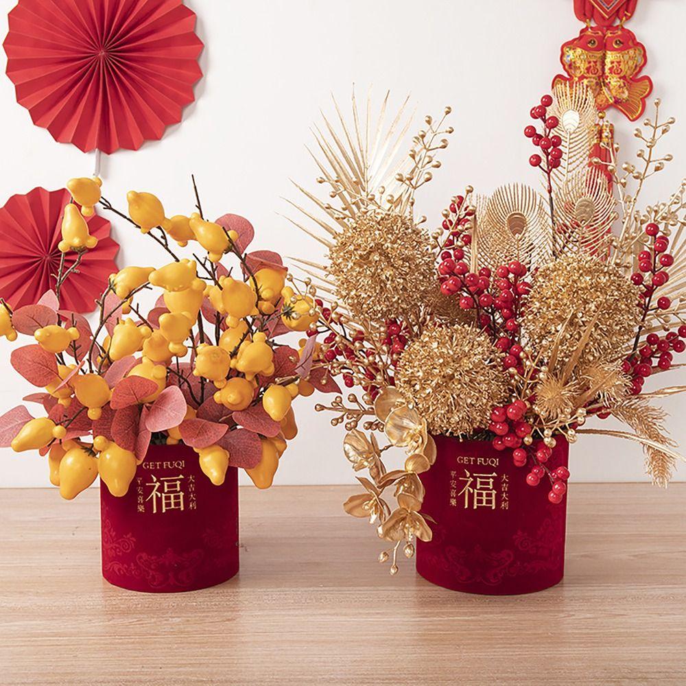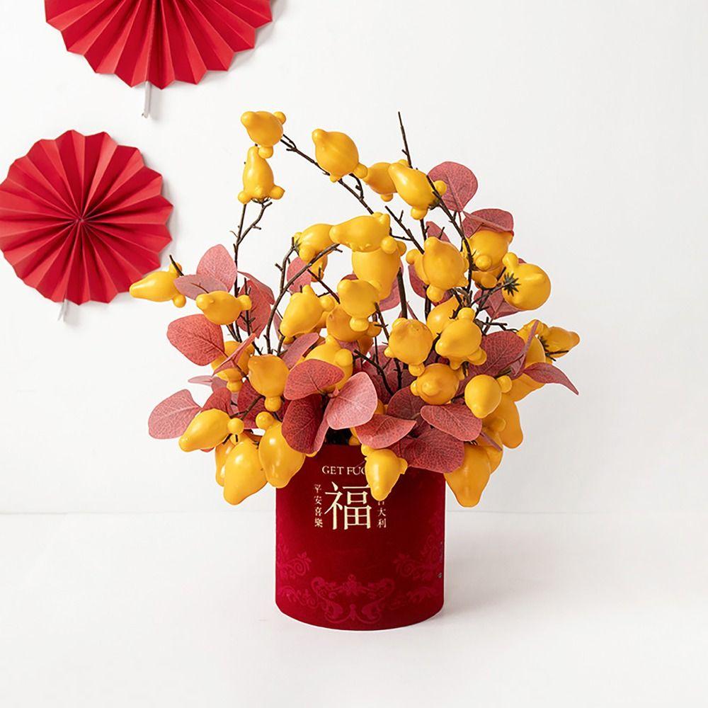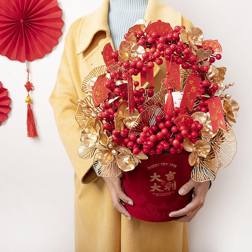 Ведро с китайскими иероглифами FU, фланелевая ткань, домашнее украшение, ведро с искусственными цветами на свадьбу