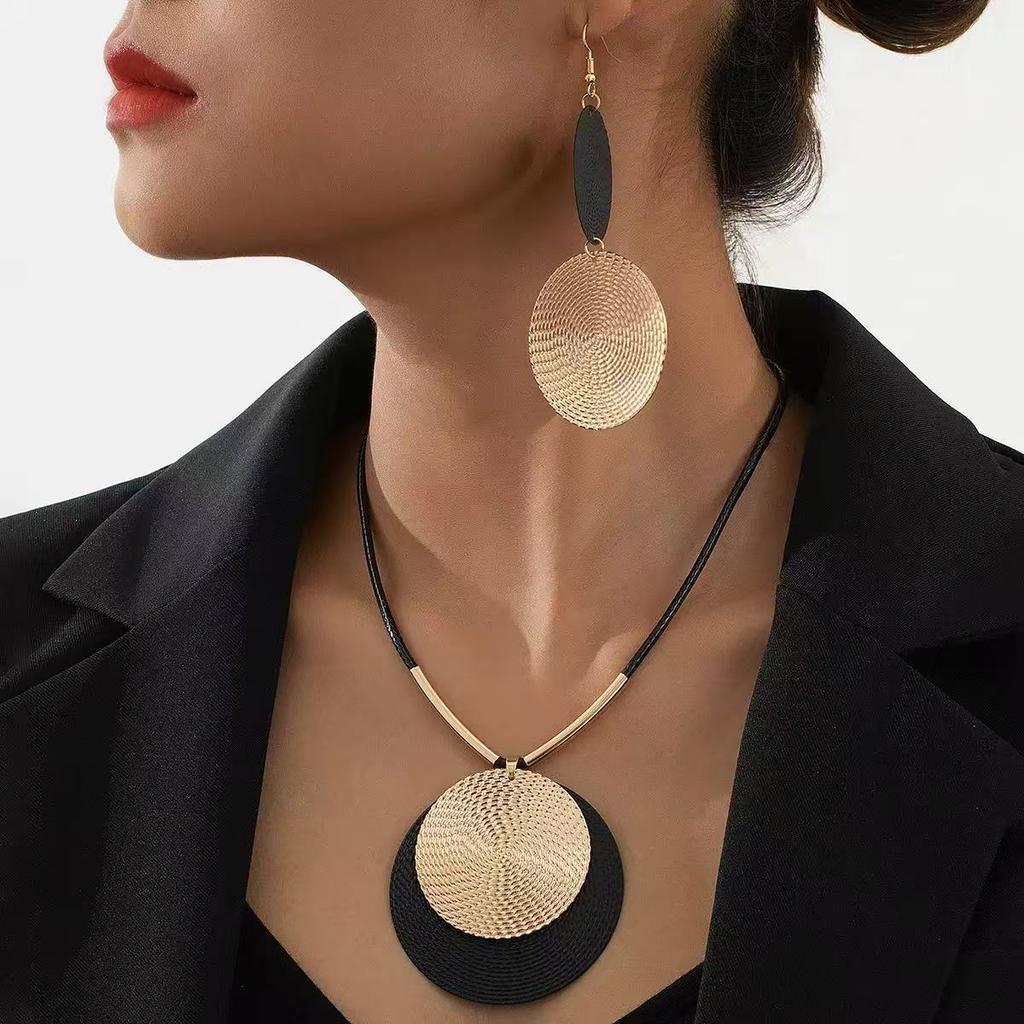 Стежка геометрический круглый кулон ожерелье серьги ретро стиль заявление ювелирные изделия для отпуска одежда