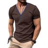 Летняя мужская футболка, повседневная рубашка Henry с V-образным вырезом, облегающая футболка, топ с короткими рукавами для мужчин