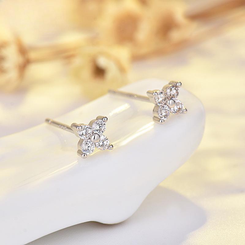 Серьги с микроинкрустацией из циркония, серьги с маленьким цветком в виде четырехлистного клевера, женский стиль, подарок одноклассникам