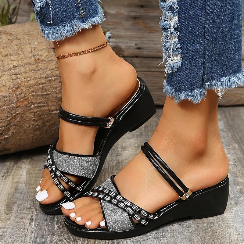 Женские корейские римские босоножки на танкетке с пайетками, летние модные шлепанцы на высоком каблуке, удобные уличные удобные глянцевые повседневные сандалии с открытым носком — купить товар онлайн с бесплатной доставкой по всему миру!