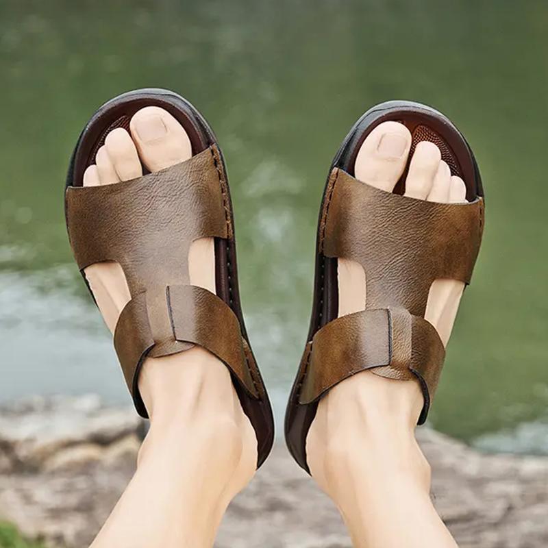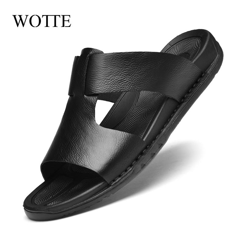Мужские тапочки, кожаные летние уличные сандалии, легкие пляжные тапочки с мягкой подошвой, повседневные шлепанцы, мужская обувь, большой размер 37-46