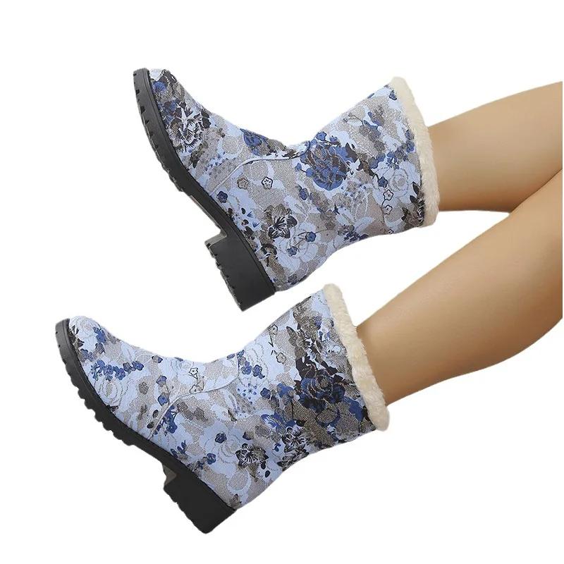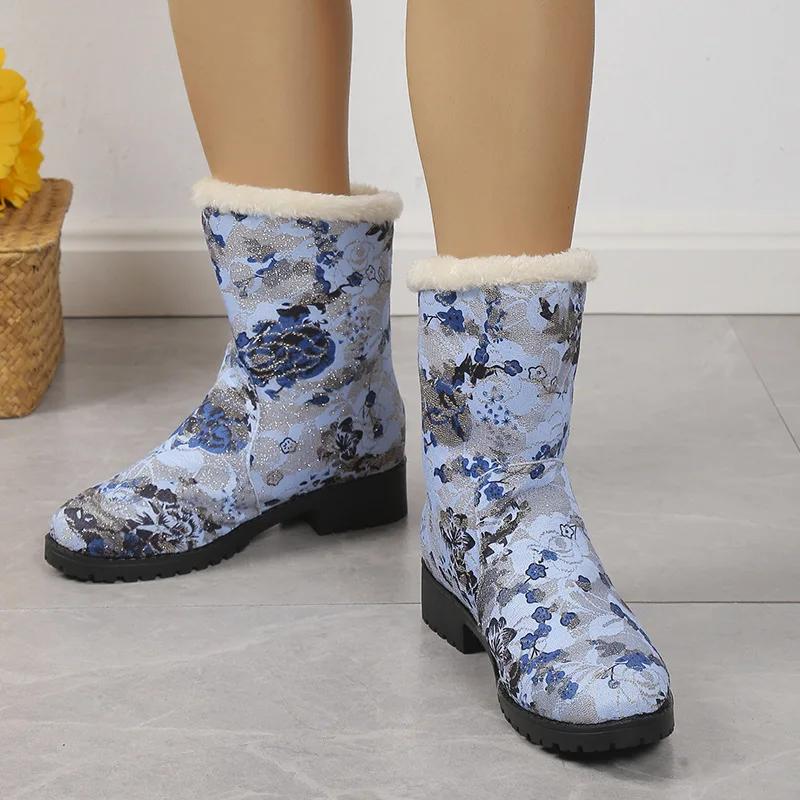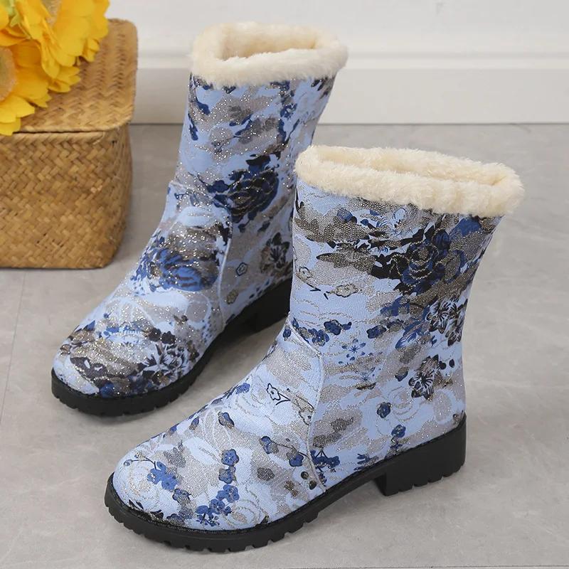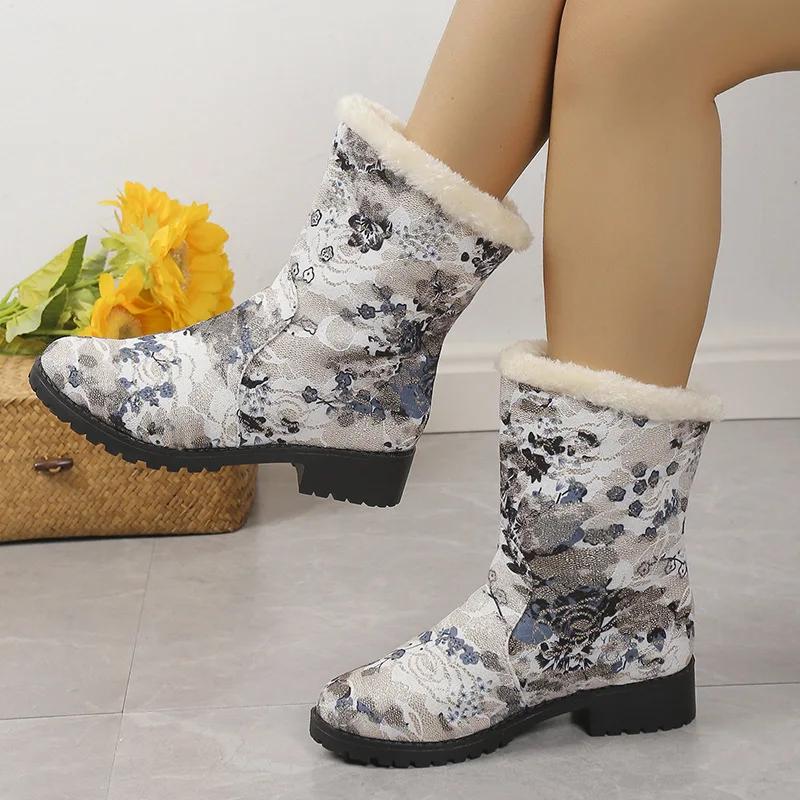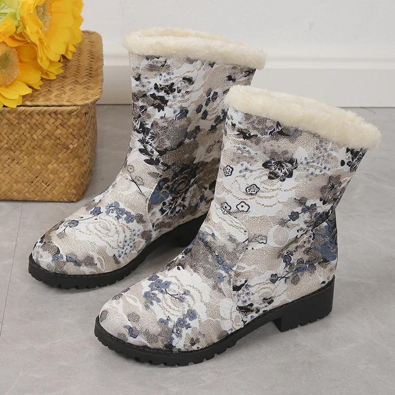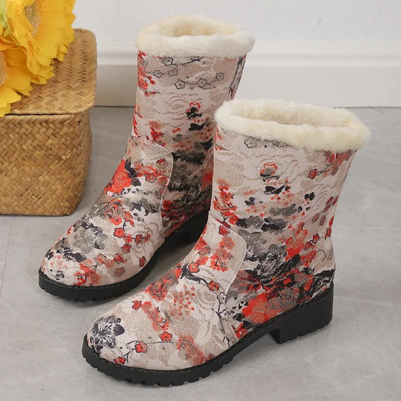 Зимние сапоги Женская обувь Новые повседневные хлопковые сапоги с принтом в стиле ретро Теплые плюшевые сапоги Модная обувь на платформе Botas De Mujer 2024 Wintere
