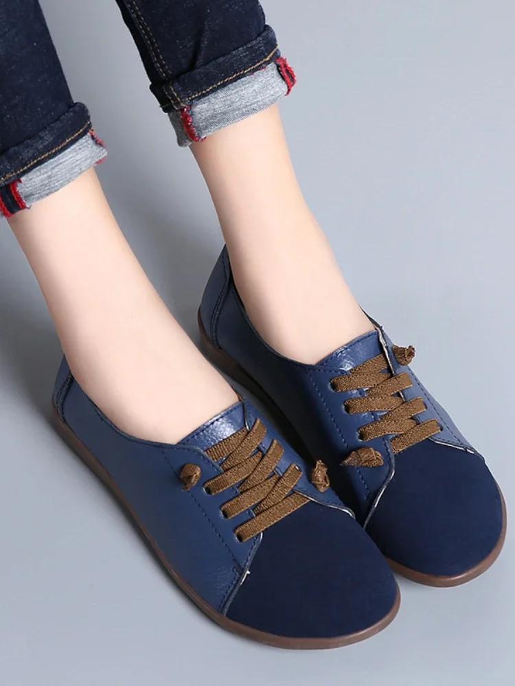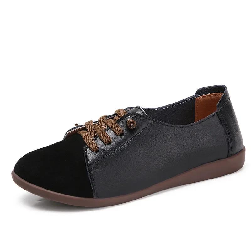 Кожаные туфли женские весенние женские туфли нескользящие балетки на шнуровке женские оксфорды больших размеров мокасины женские