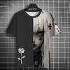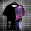 Летние аниме-футболки с принтом роз для девочек в стиле 3D, уличная одежда для мужчин, модные футболки большого размера с коротким рукавом и круглым вырезом, футболки, топы, одежда