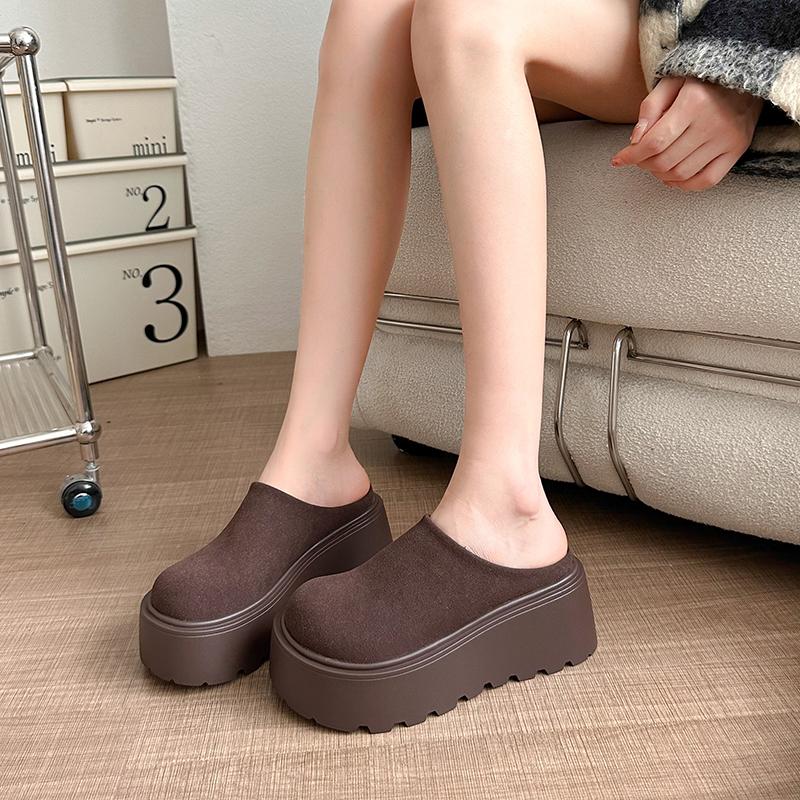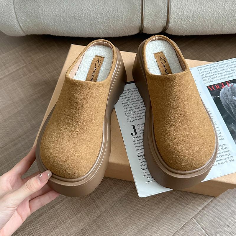 2024 Осень и зима Ретро Новые модные женские теплые бархатные однотонные хлопковые тапочки с толстой подошвой и носком