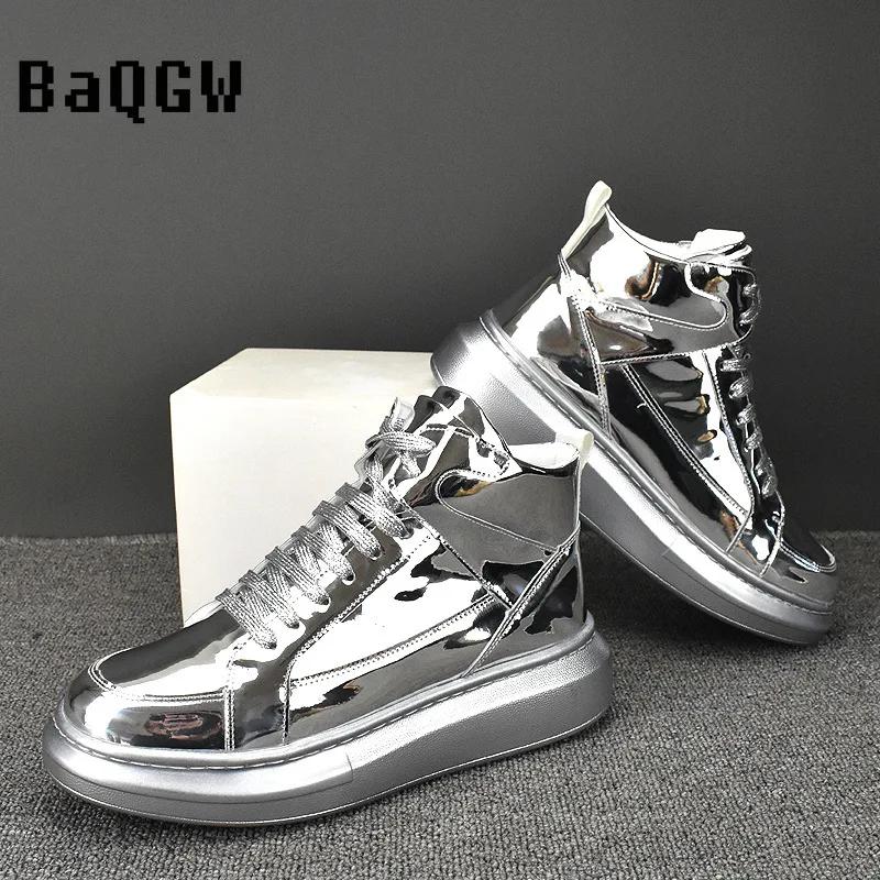 Gloden SLiver Модные кожаные ботинки для мужчин Водонепроницаемые короткие ботинки на шнуровке Мужские уличные высокие мотоциклетные ботинки на платформе — купить товар онлайн с бесплатной доставкой по всему миру!